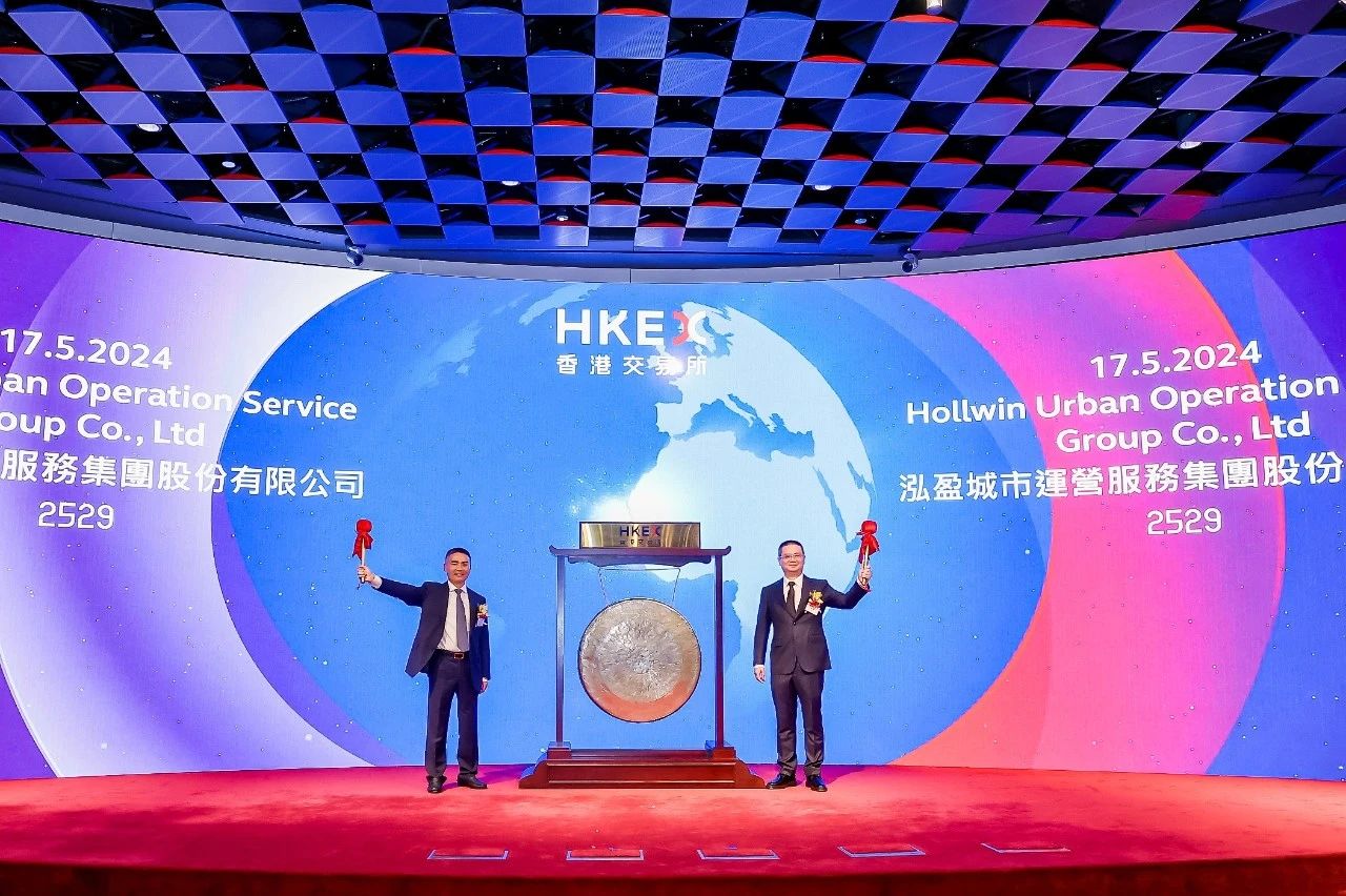 2024年5月17日,泓盈城市运营服务集团股份有限公司(股票名称:泓盈城市服务,股票代码:2529.HK)在香港联合交易所主板挂牌上市。长沙市人民政府党组成员、副市长周志凯,长沙市人民政府国有资产监督管理委员会党委书记、主任黄阳,长沙市人民政府金融工作办公室党组书记、主任邱兵东,博彩平台 党委书记、董事长邹春林出席上市敲锣仪式。