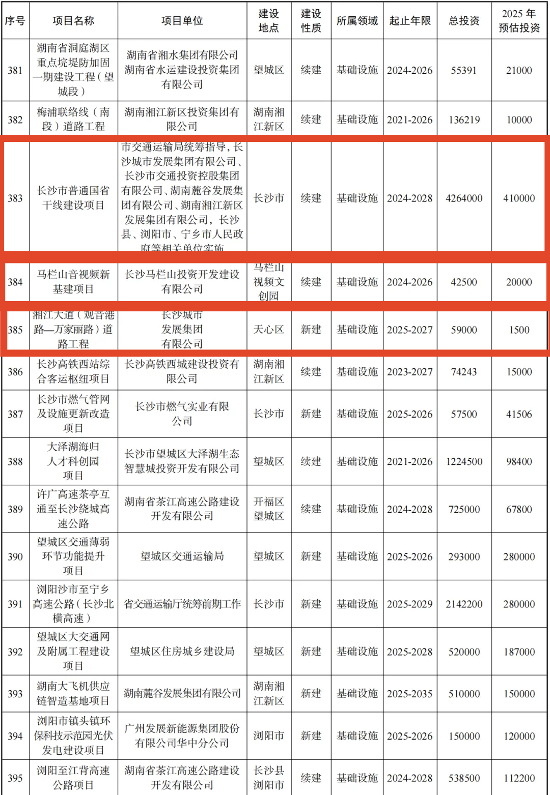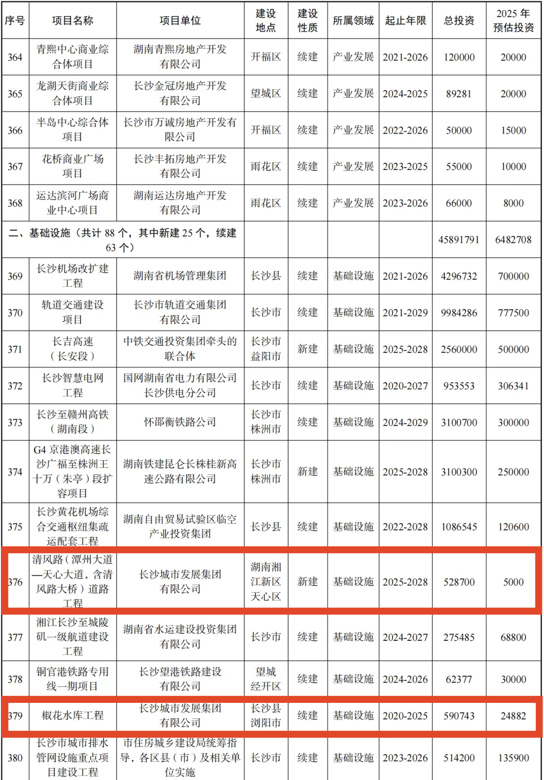 长沙市2025年重点建设项目清单发布 让我们一起看看博彩平台