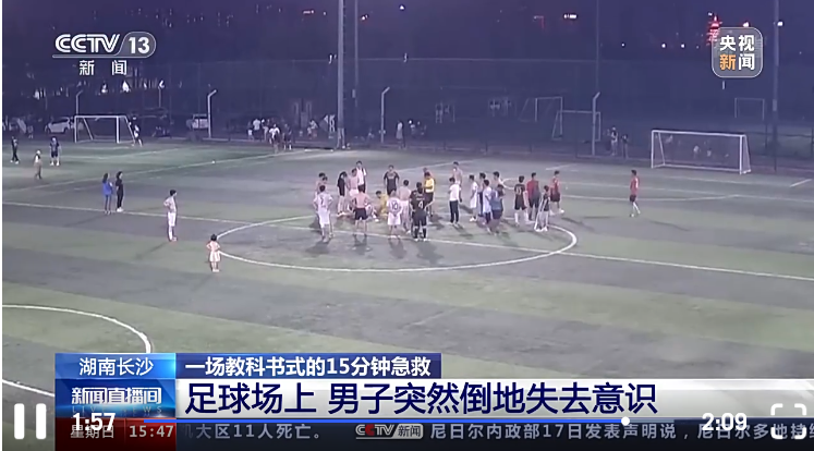 一场教科书式的15分钟急救·湖南长沙:足球场上,男子突然倒地失去意识。
