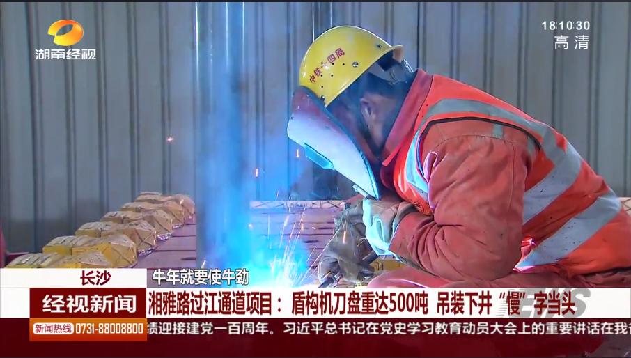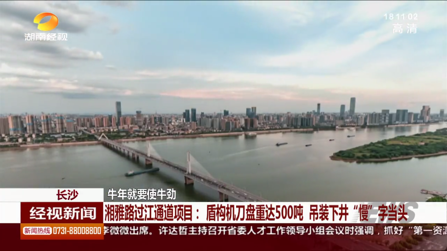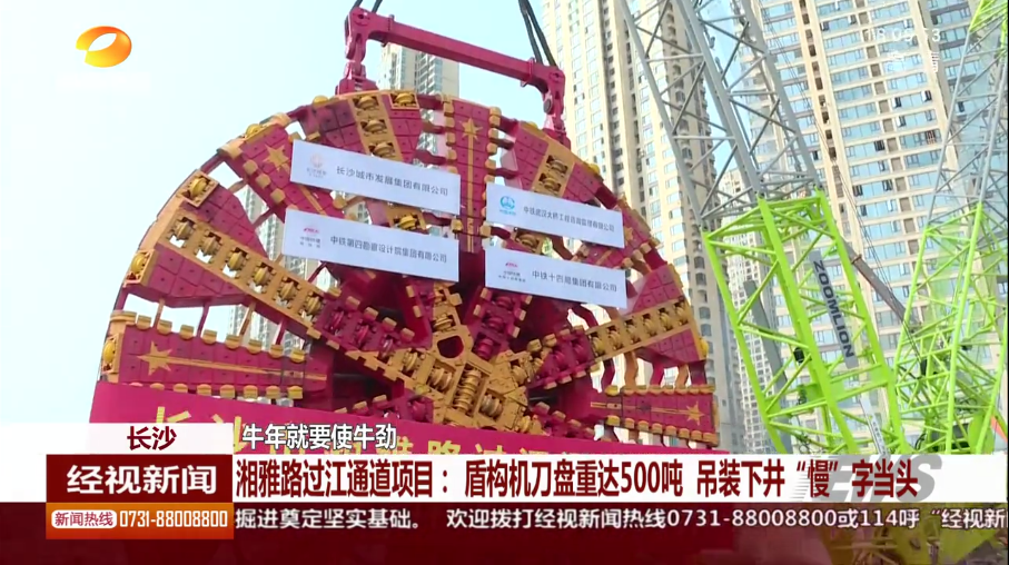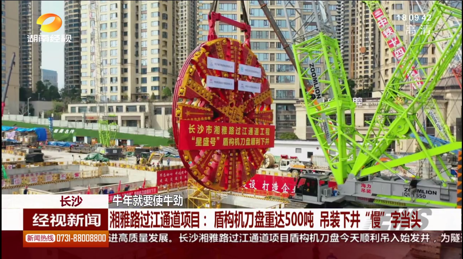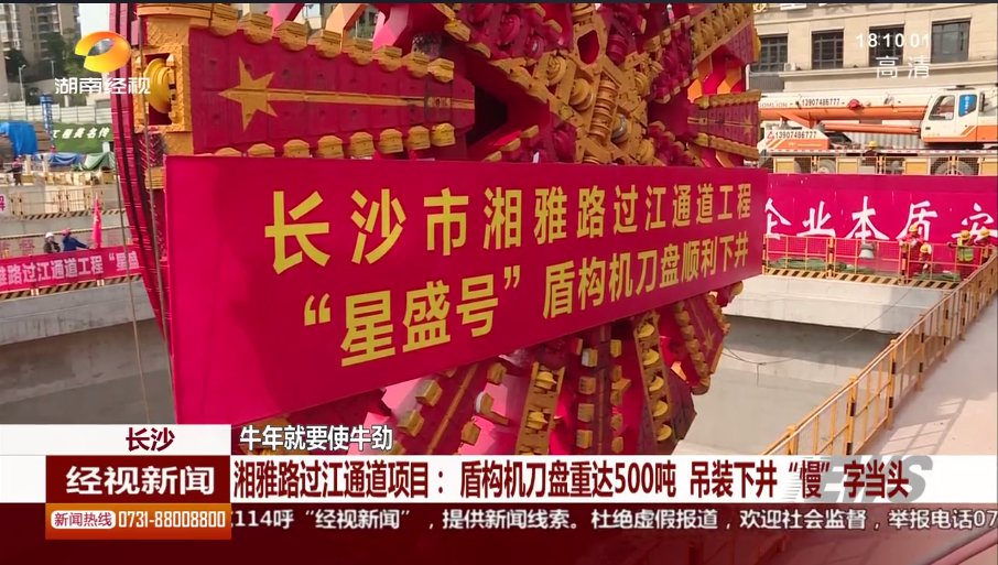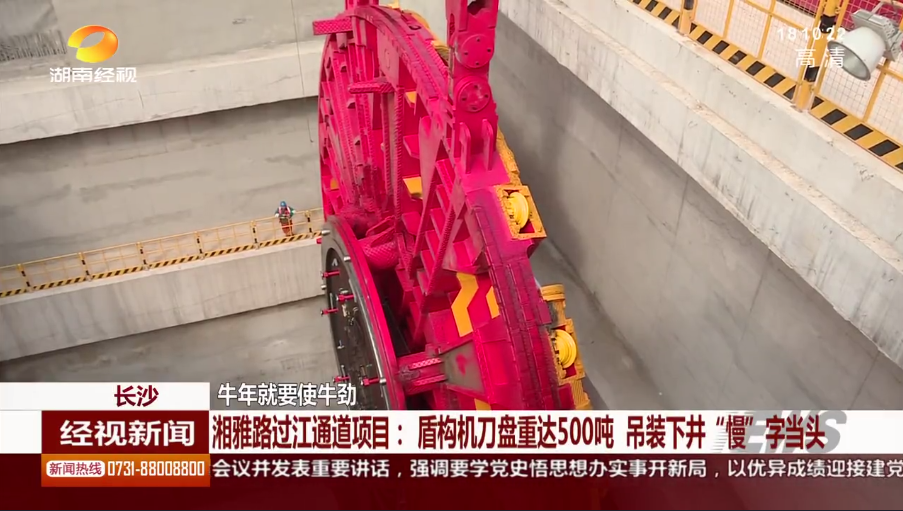 湖南经市新闻:长沙 牛年就要使牛劲 湘雅路过江通道项目:盾构机刀盘重达500吨 吊装下井“慢”字当头