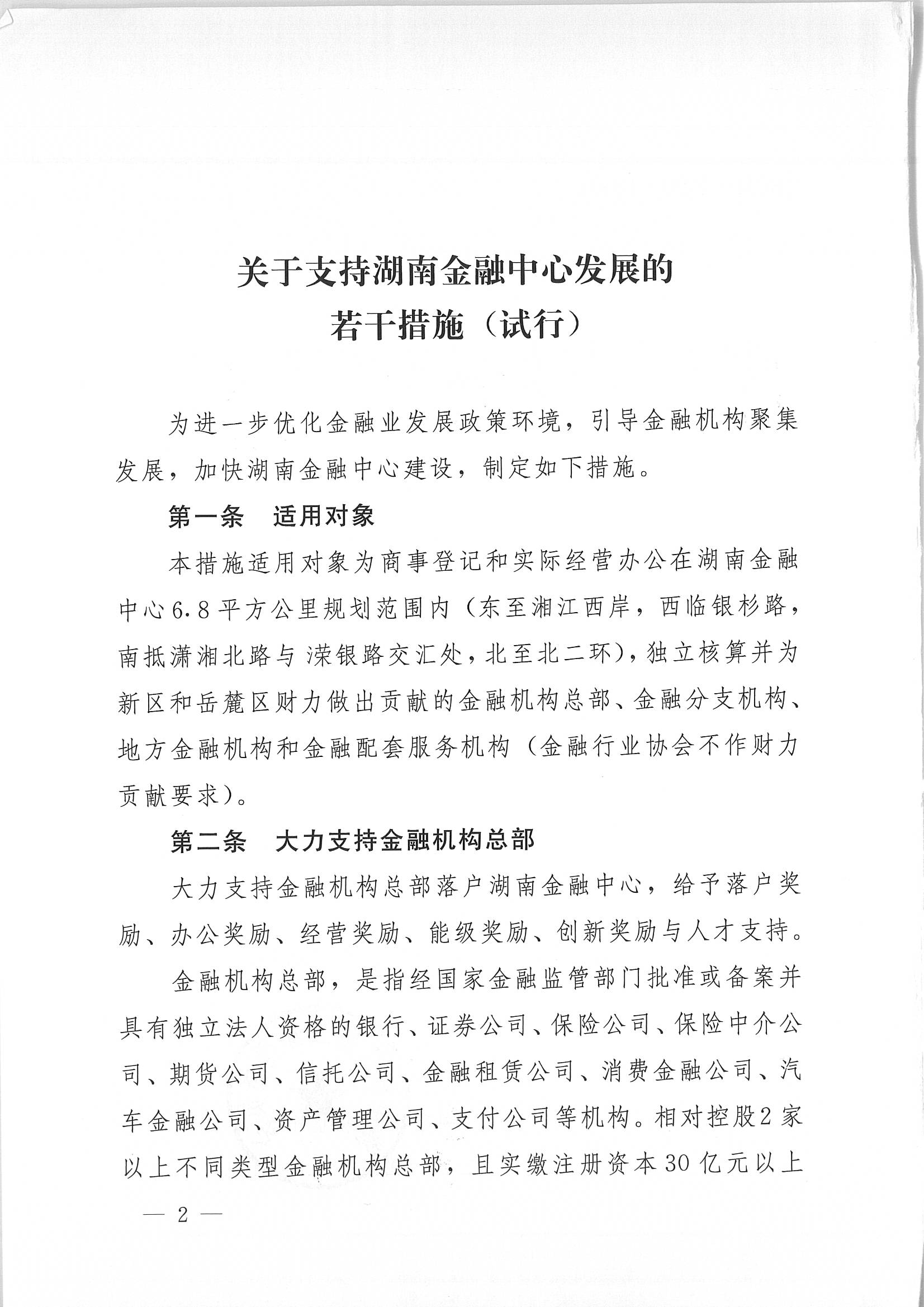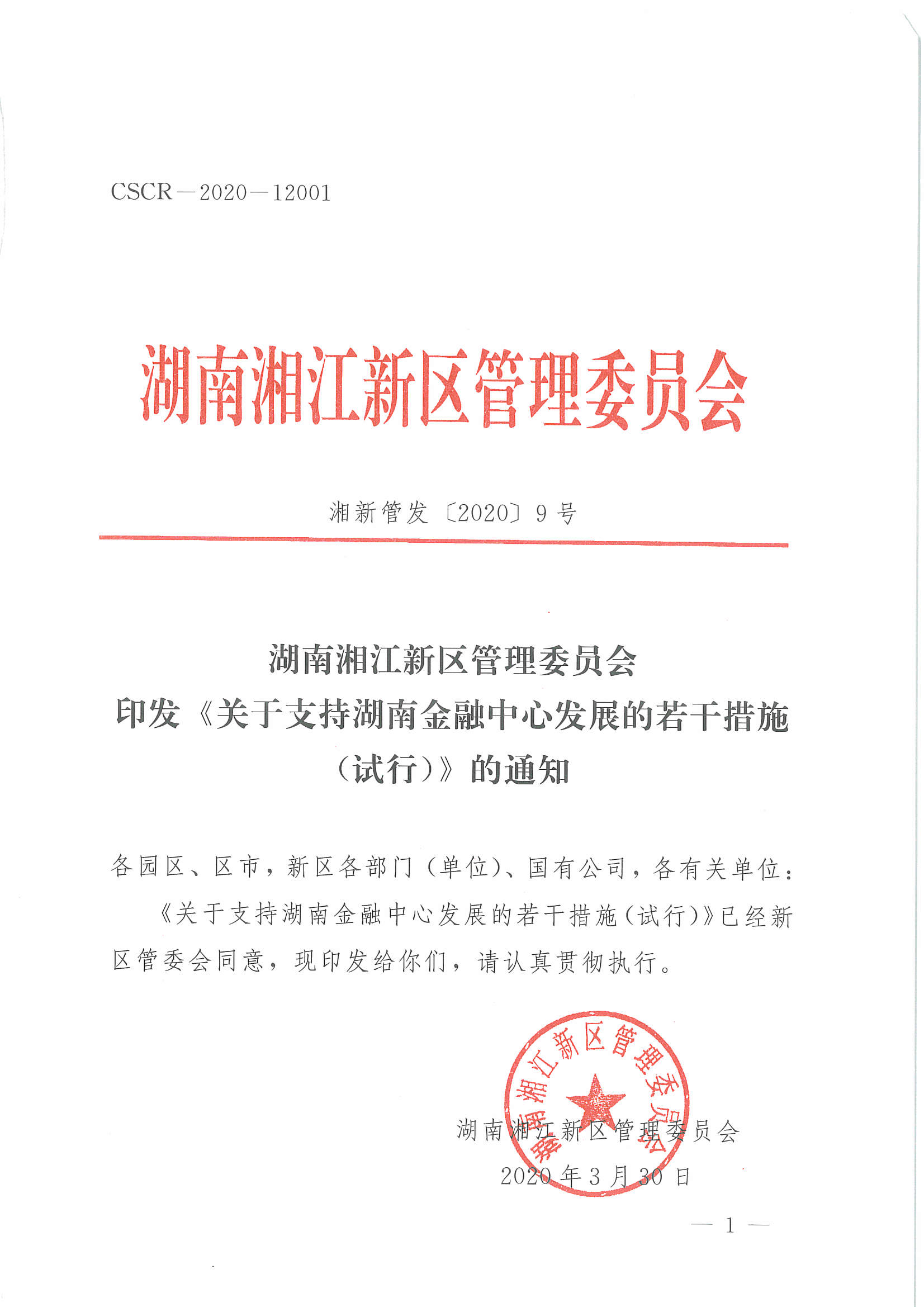 湘新管发〔2020〕9号 印发《关于支持湖南金融中心发展的若干措施(试行)》的通知